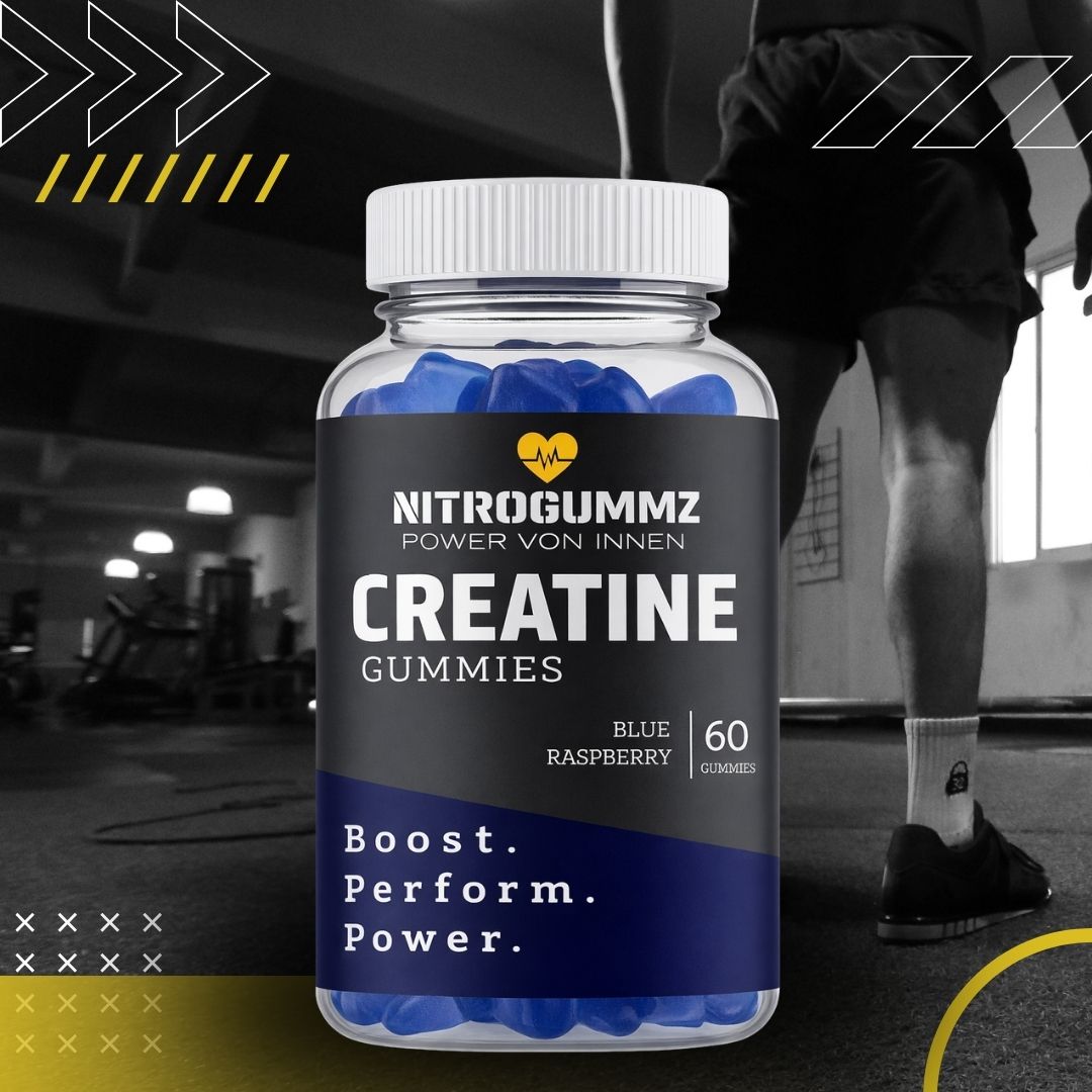 Unsere veganen, glutenfreien und zuckerfreien NitroGummz liefern hochdosiertes Kreatin pro Portion, erhöhen deine Muskelenergie und unterstützen Kraft, Leistungsfähigkeit und Durchhaltevermögen. Mit reinen, wirksamen Inhaltsstoffen und optimaler Aufnahme sind sie perfekt für unterwegs und helfen dir, deine Power, Regeneration und Performance auf das nächste Level zu bringen.